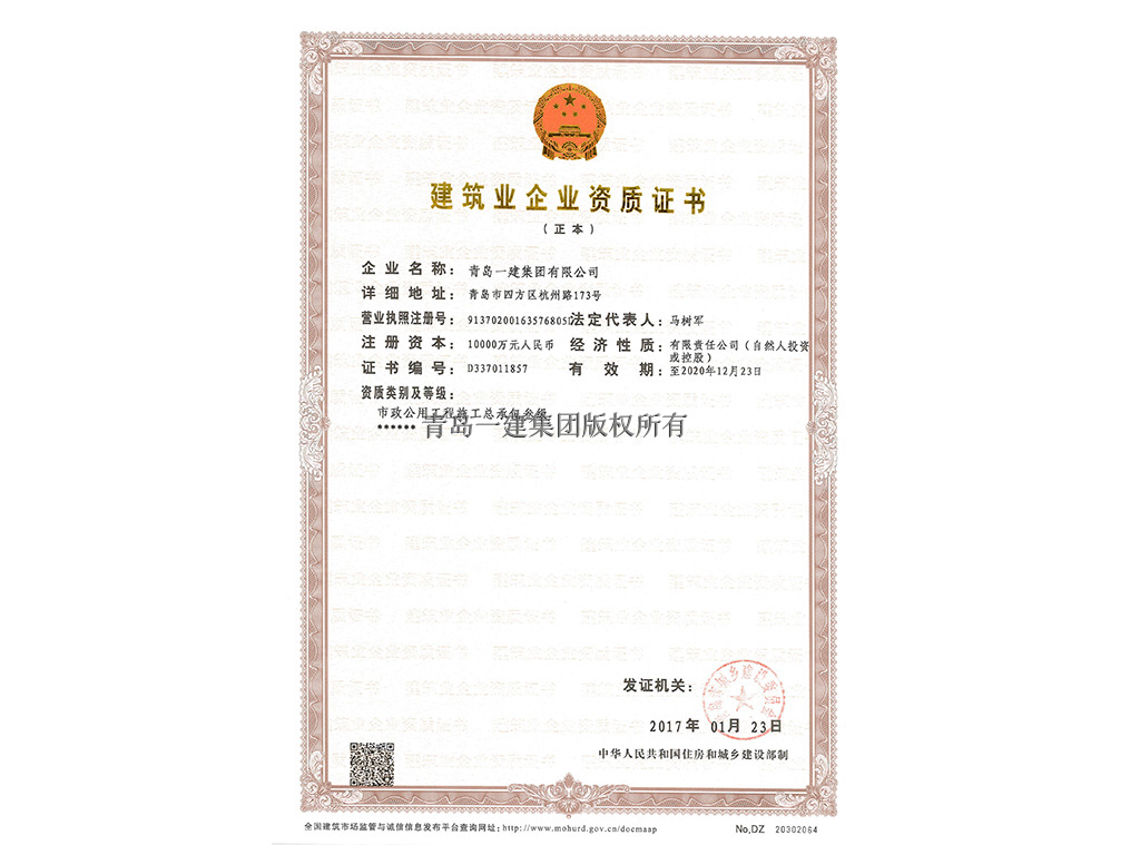 Grade C Qualification in General Contracting of Municipal Public Projects