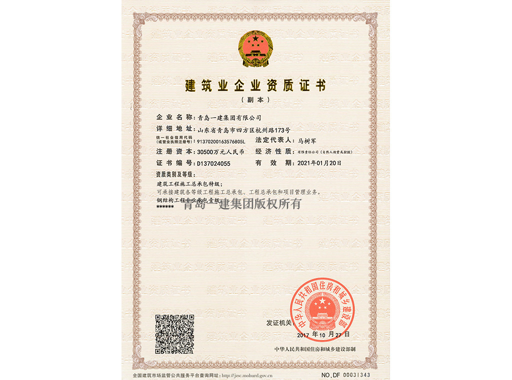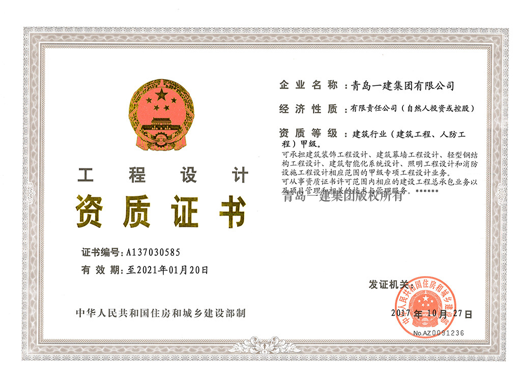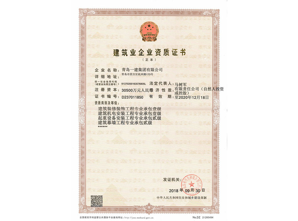 Grade A Qualification in Professional Contracting of Architectural Decoration Projects
