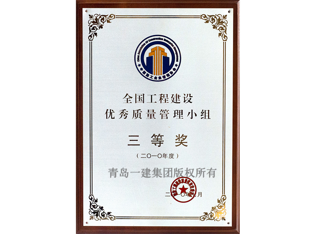 全国工程建设优秀质量小组企业三等奖