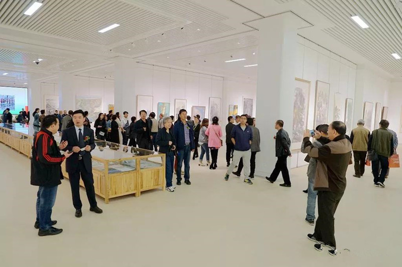 The leading guests at the opening ceremony were Liu Zansong, Vice Chairman of Qingdao Municipal Consultative Conference, Qi Guanghui, Chairman of the Health and Sports Committee of Qingdao Municipal Consultative Conference, Wei Shengji, Secretary and Vice Chairman of Qingdao Municipal Cultural Union Party Group, Shang Yanqing, Chairman of Qingdao No.1 Construction Group Co., Ltd, Ma Shujun, Executive Chairman and President of Qingdao No.1 Construction Group Co., Ltd, Wang Shaobo, Vice Chairman of Shandong Artists Association and Chairman of Qingdao Artists Association, Zhang Fengtang, member of Presidium of the Artists Association of Shandong Province, Executive Vice-Chairman of the Artists Association of Qingdao City, President of Qingdao Painting Academy, and almost 300 artists representing the calligraphy circles of Qingdao City, including Li Kaixin, Lanlike, Tan Guoxin, Dou Shikui, Liu Shijun, Qiu Zhenliang, Chen Xiyan, Zeng Xianguo and Liu Zhenqi.