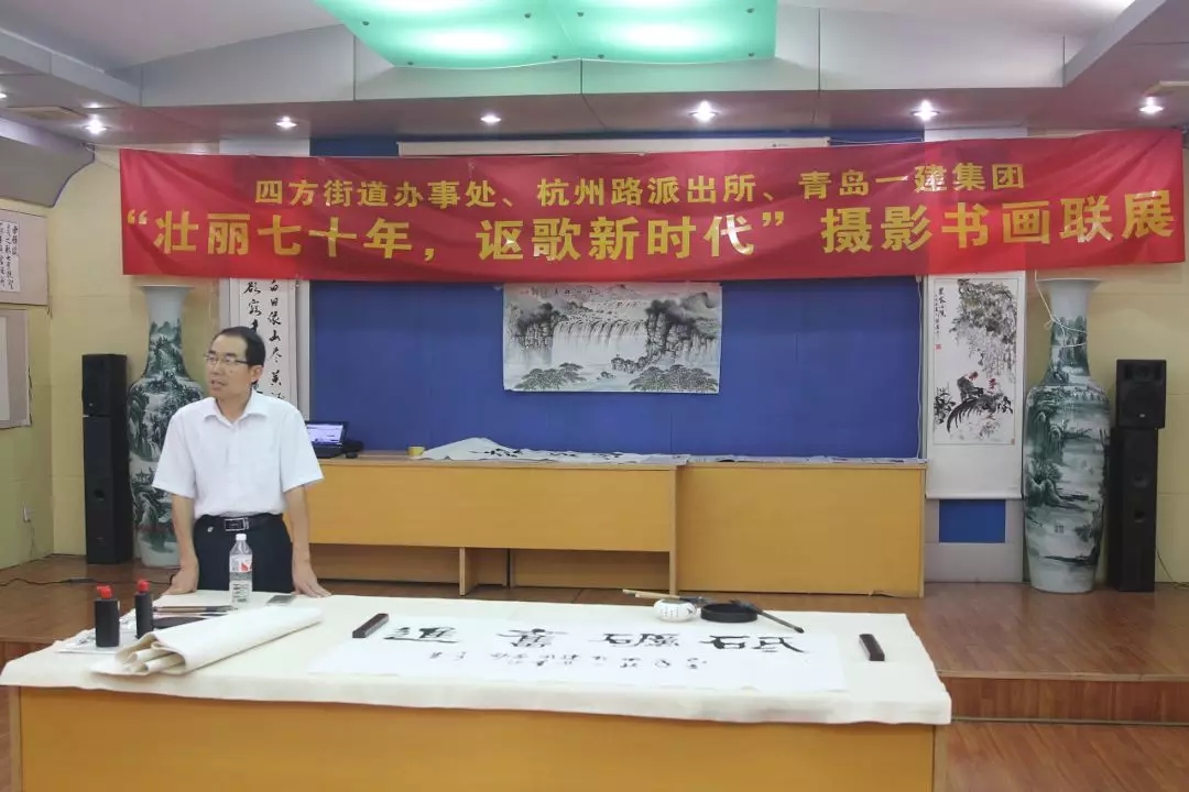 9月29日,由四方街道办事处、杭州路派出所和beplay体育集团联合举办的“壮丽七十年·讴歌新时代”摄影书画联展在集团公司多功能厅隆重举行。